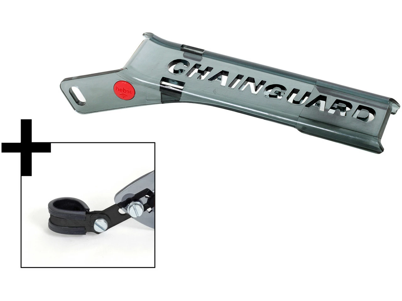 Das Endstück für den Hebie Chainguard 310, 312 und 313 Kettenschutz kommt mit Spezial-Befestigung.