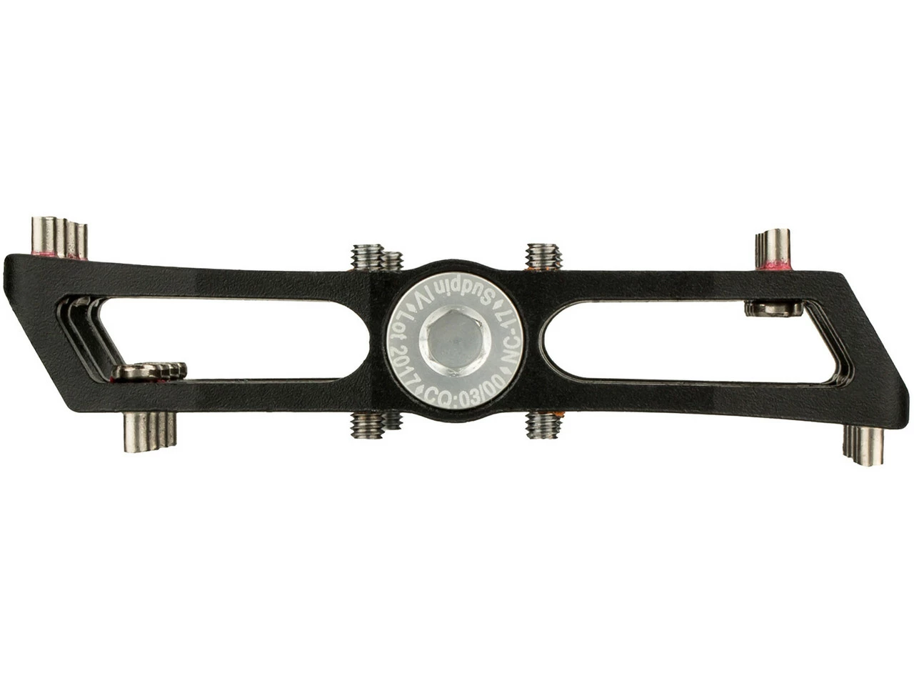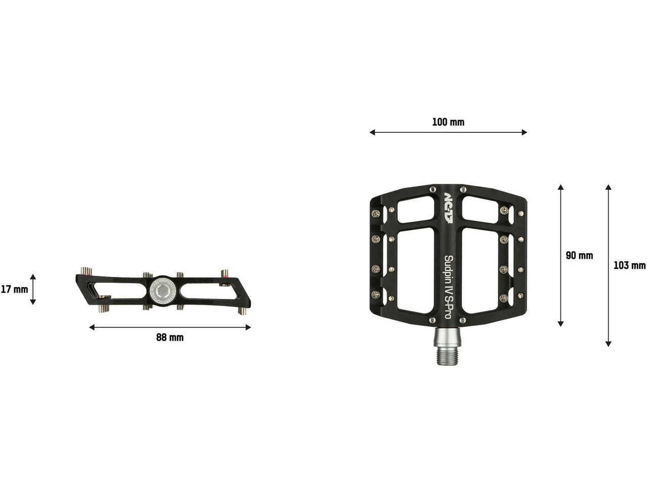 Spezifikationen:Einsatzbereich:All Mountain, TrailAusführung:PlattformpedaleTechnische Daten:Material Pedalkörper:Aluminium (7075-T6)Material Achse:Stahl (CrMo)Lagerung:PräzisionslagerBauhöhe:15 mmAbmessungen (Länge x Breite):100 x 90 mmAnzahl Pins:24Features:CNC-gefertigte Aluminium-Plattformmit 2 gedichteten PräzisionslagernFail Safe Systemmit Lasergravur und Identifikationsnummer24 austauschbare Pins (pro Pedal)Herstellernummern:schwarz:7055weiß:7056rot:7057grün:7058poliert:7059blau:7060gold:7061Lieferumfang:1 Paar Plattformpedale NC-17 Sudpin IV S-Pro (rechts und links)inkl. Ersatzpins