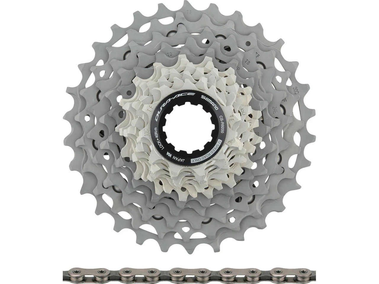 1 x Kassette Shimano Dura-Ace CS-R92001 x Kette Shimano XTR / Dura-Ace CN-M91001 x Abschlussring Shimano Aluminium1 x Kettenschloss Shimano SM-CN910-12 Quick-Link
