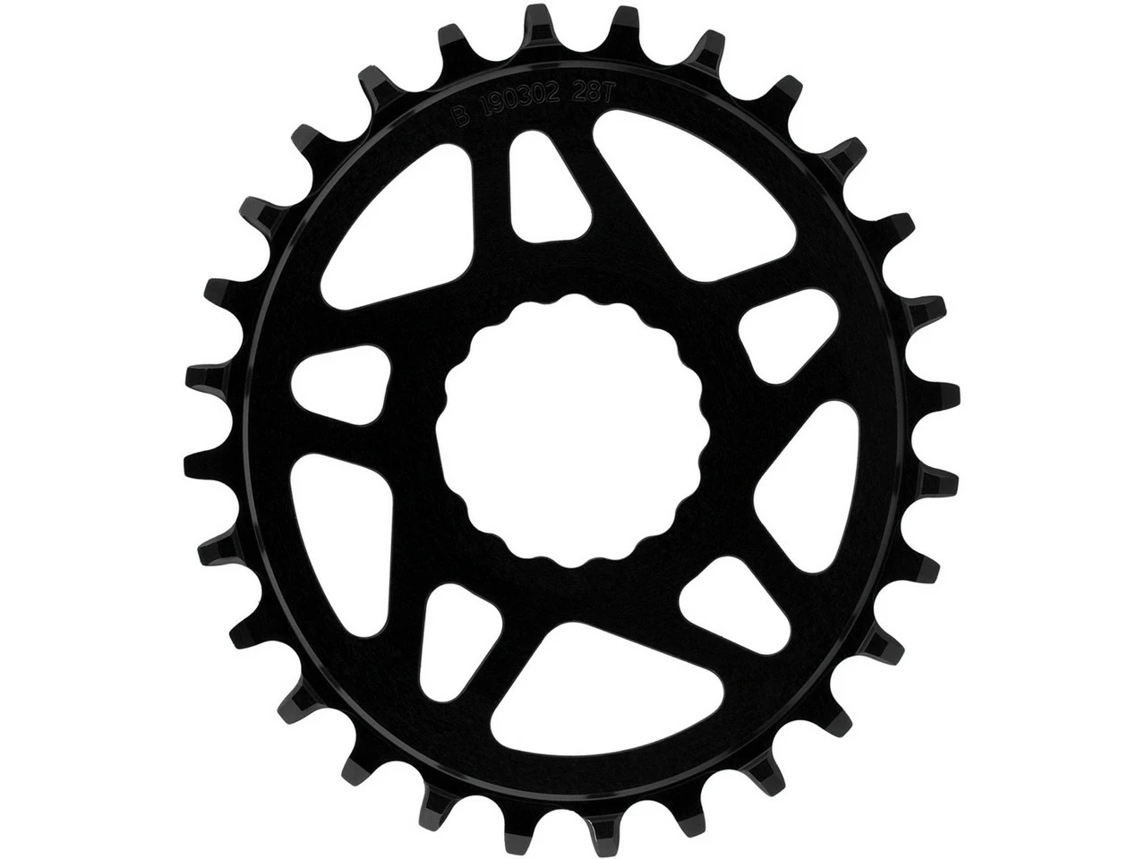Die rechte Seite des Kettenblattzahns hat eine andere Form als die linke Seite. Die rechte Seite überträgt die Kraft auf die Kette und die linke Seite eröffnet einen Freiraum zur Reinigung von Schlamm und Schmutz. Da die beiden Seiten also komplett unterschiedliche Funktionen haben, ist es sinnvoll, sie unterschiedlich zu designen, getreu dem Motto: Extraverstärkung, wo man sie braucht, weniger Material, wo man es nicht braucht.